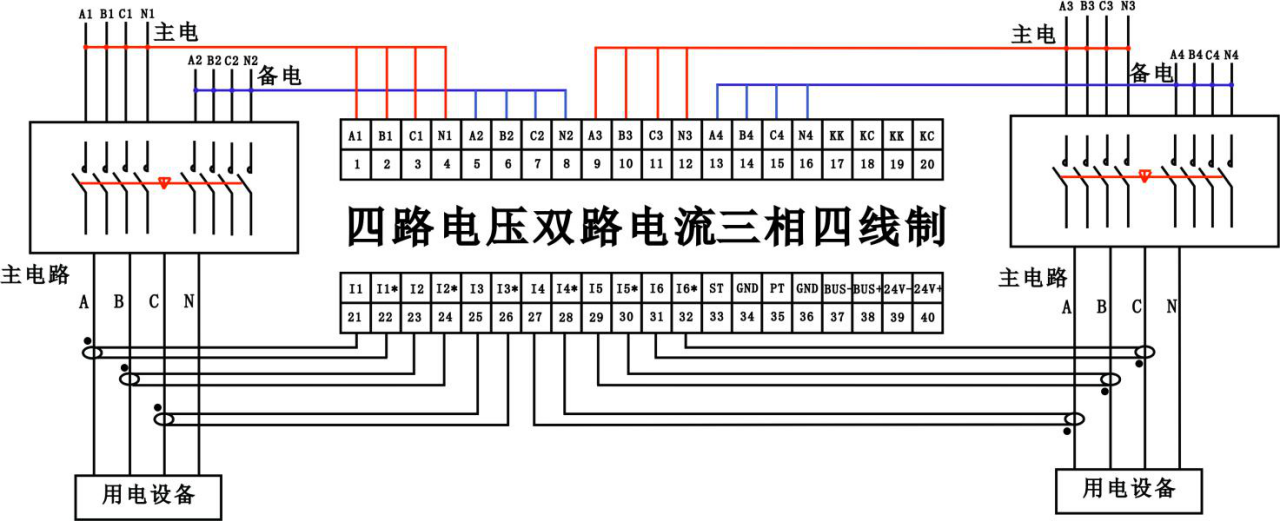 | 13、14、15、16 | 三相四線制A4 B4 C4 N4電壓接線端子 | ||||