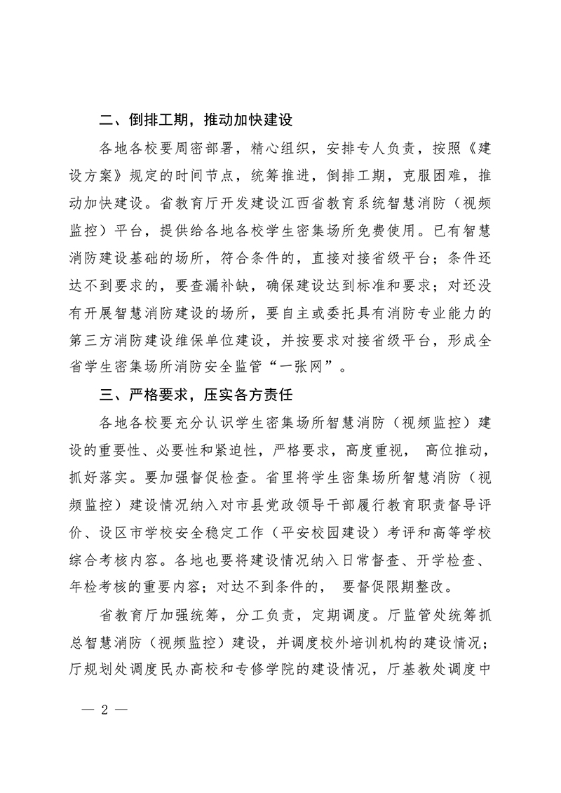 為了確保智慧消防平臺能夠盡快投入使用,江西省教育廳提出了倒排工期的工作方法。這意味著,各責任單位需要根據既定的時間節點,合理安排工作進度,確保每一個環節都能按時完成。省教育廳還將為學生密集場所提供免費使用的智慧消防(視頻監控)平臺,以加快建設步伐。